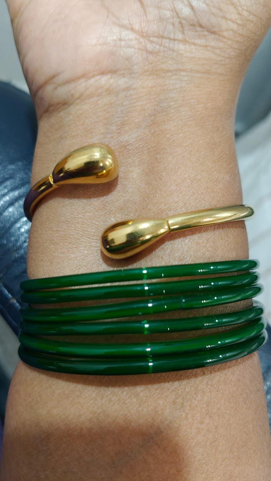 Enhance your style with our Elegant Drop Bangle Kada. Featuring a contemporary drop design, this gold-toned bangle exudes modern sophistication and elegance. Crafted from premium stainless steel, it ensures lasting quality and durability, making it a trendy accessory that effortlessly complements any outfit for various occasions.